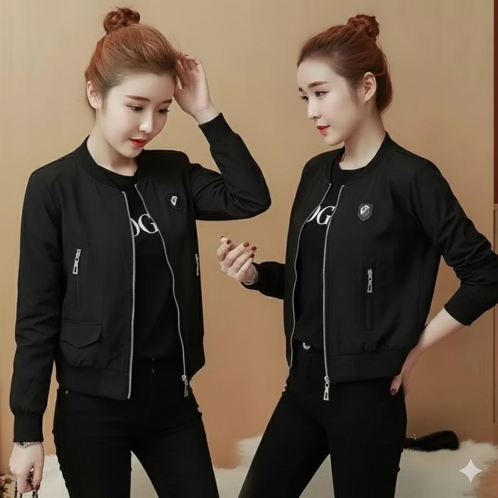 Jaket wanita style korea/model terbaru kainJN waterproff/emblem IP premium terlaris