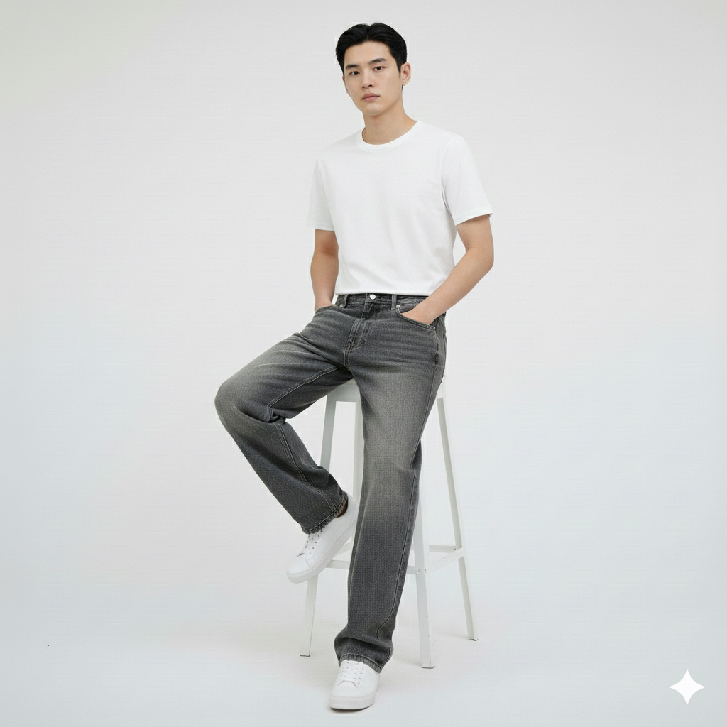 Ethena Celana Jeans Pria Baggy Pants Korean Style Oversize Straight Loose Abu baggy pants