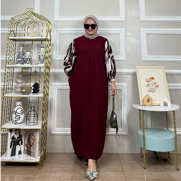 Vanila Dress / Gamis Kombinasi Cey Airflow Dan Rayon