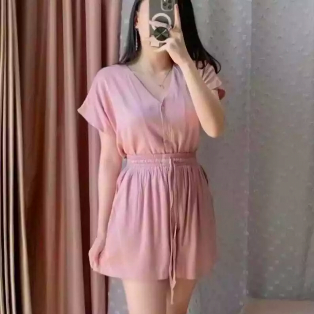 Babydoll Baju Wanita One Set Piyama Setelan Tidur Atasan Lengan Pendek dan Celana Pendek Bahan Katun
