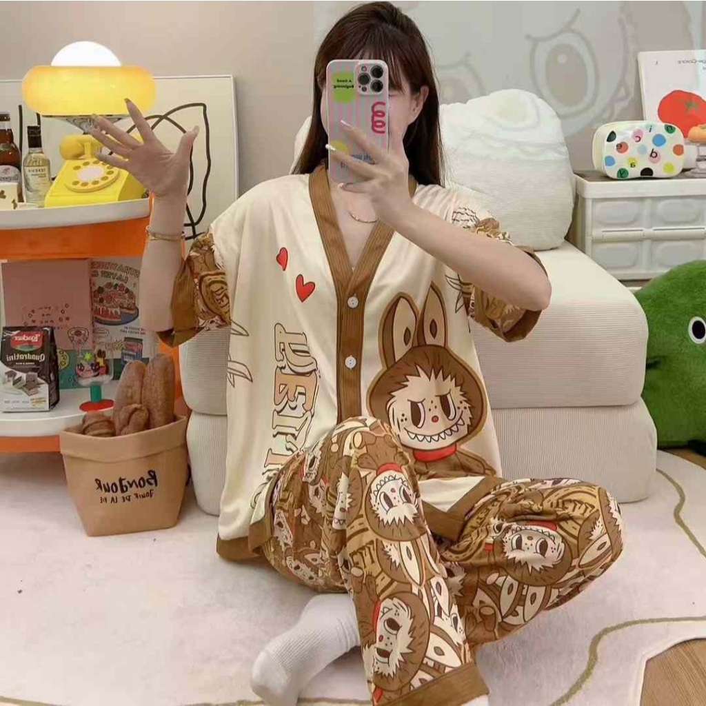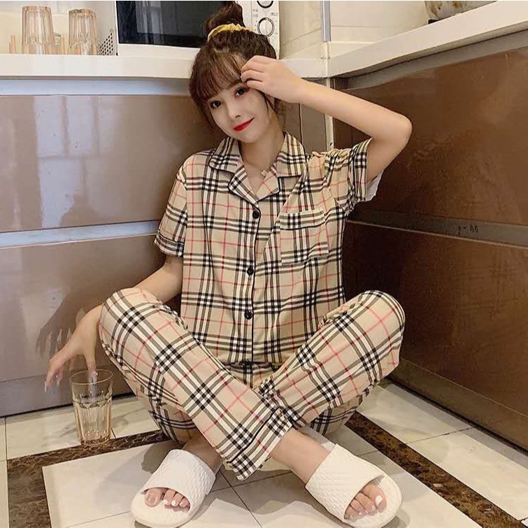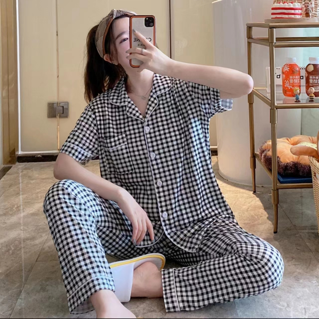 [Hallyu] Baju Tidur Piyama Kancing Lengan Pendek Set Wanita Import | Baju Tidur Kemeja Impor | Piyama Kancing Korea | Ba
