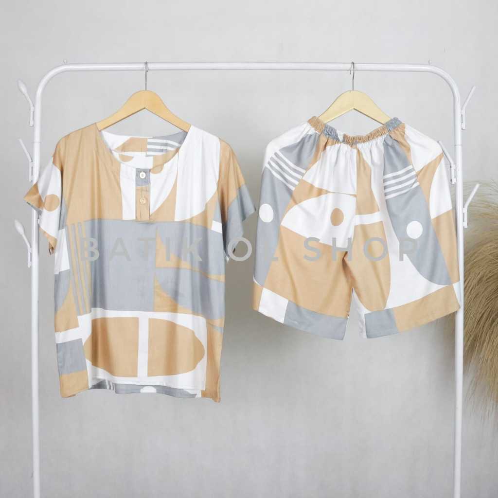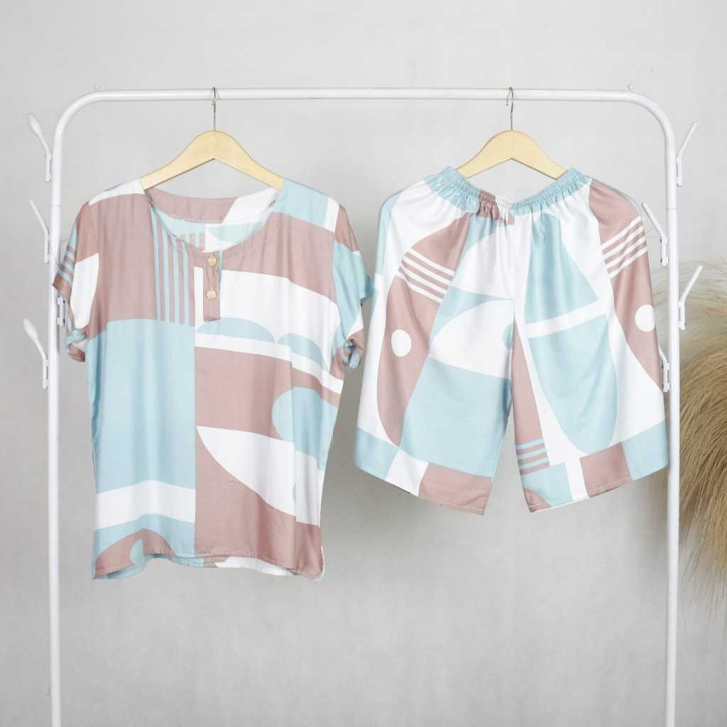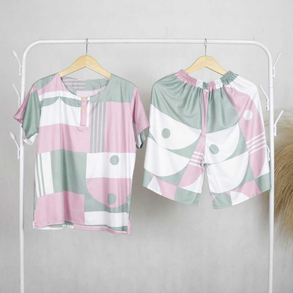 Setelan Baju Tidur Wanita Lengan Pendek Piyama Celana Pendek Motif Holco Bahan Rayon