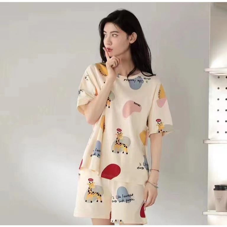 OPT P15 [Free Ongkir] Piyama Tidur Wanita Celana Pendek Baju Set Polyester Spandek Adem