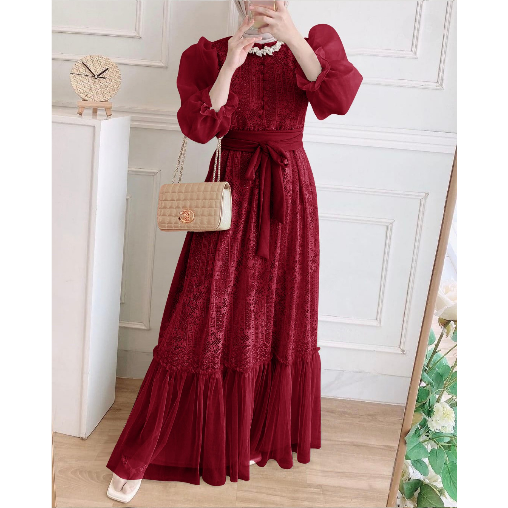 O2 Fashion / Inara dress maxi /tersedia size M L XL XXL XXXL / maxi busui dress busui/busui friendly/ maxi brukat cantik busui sleting depan