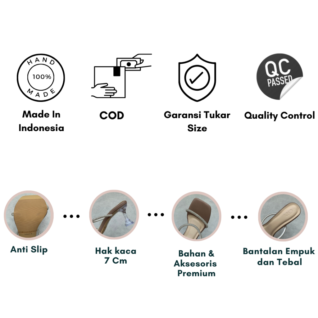 Crn Sunday Sendal Hak Kaca Wanita 7Cm (Tersedia Size 36-41)