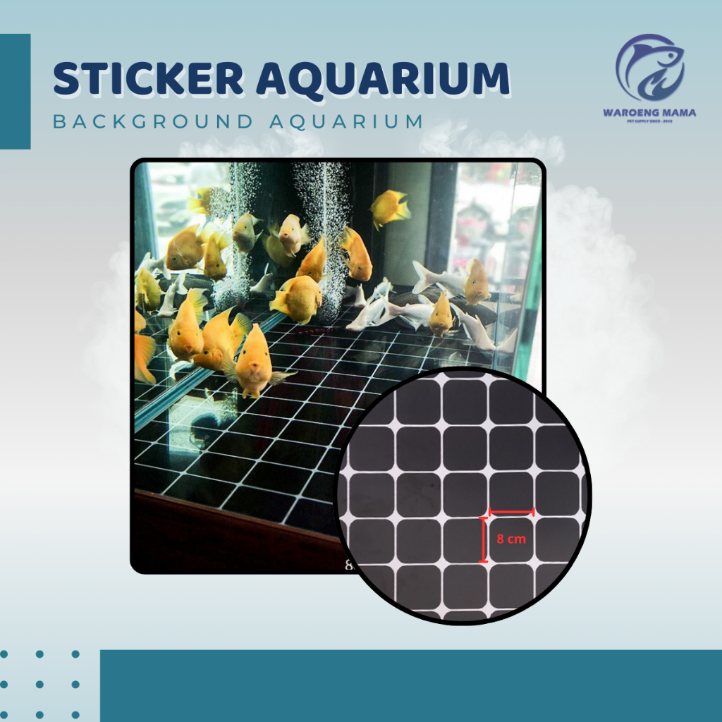 Sticker Dasar Aquarium Kotak Kotak Background Skotlet Stiker Hitam Putih Biru Akuarium Aquascape