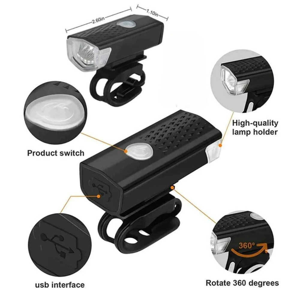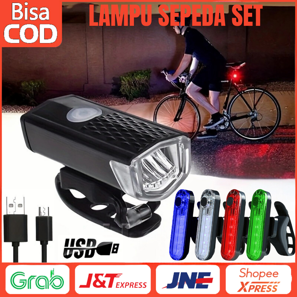 Paket Lampu Sepeda Depan Belakang LED USB Rechargeable Anti Air Super Terang Olahraga Outdoor