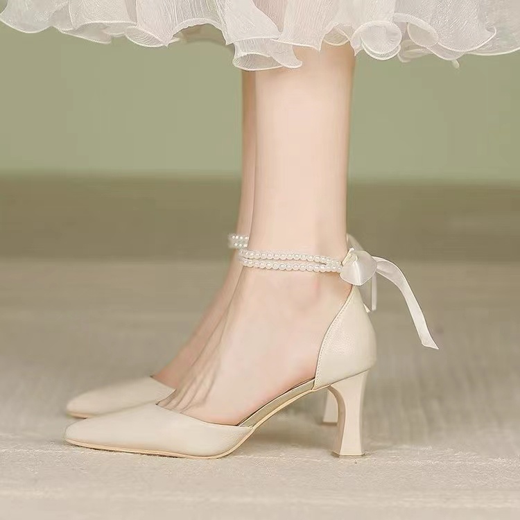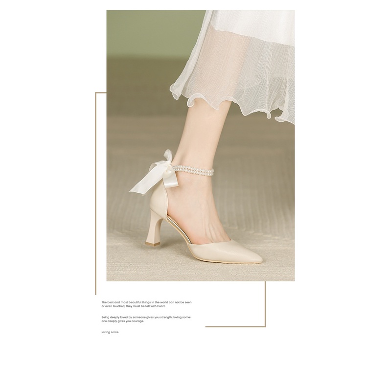 Sepatu Hak Tinggi Wanita, Sepatu Wanita, Tali Mutiara, Tinggi 6Cm