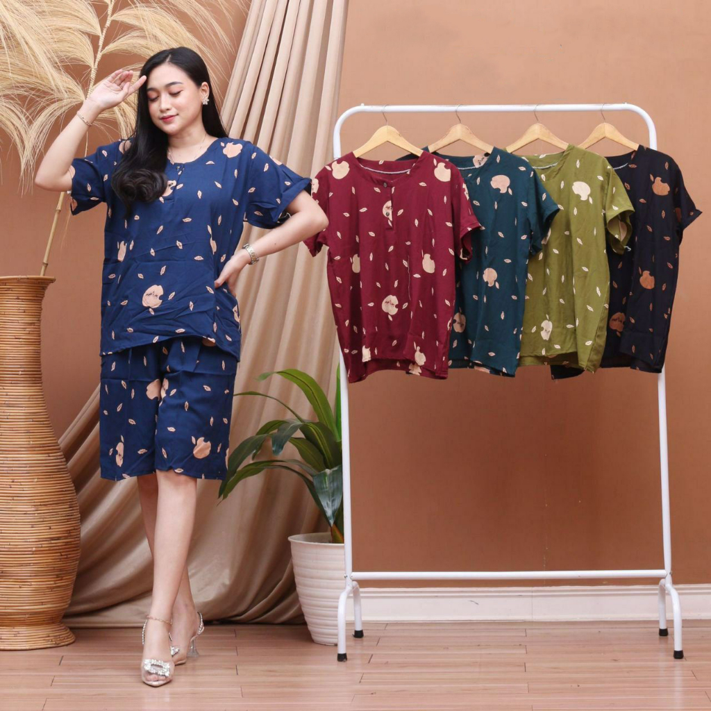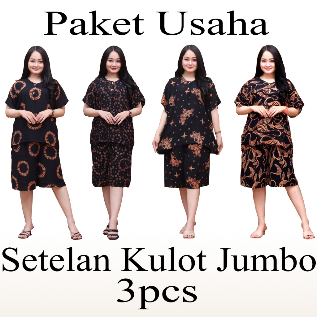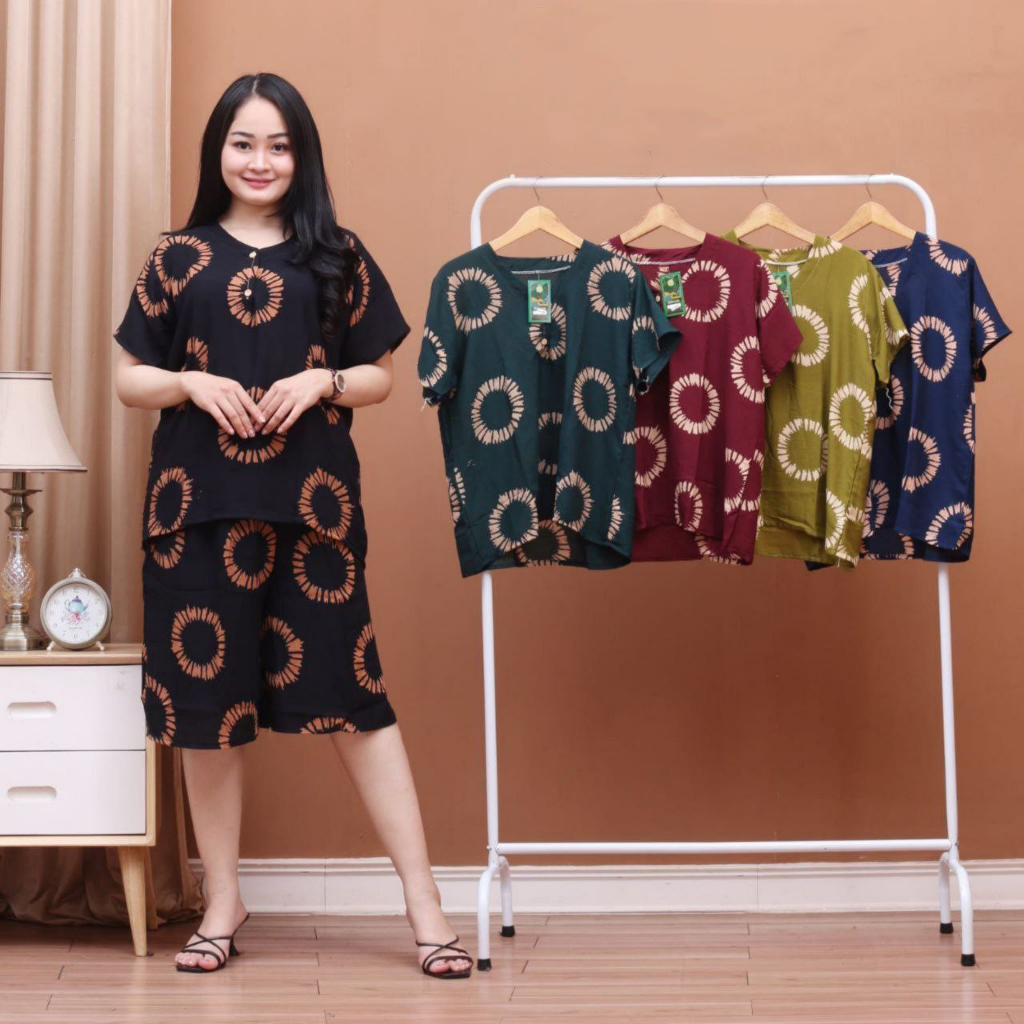 PAKET HEMAT - Setelan Baju Tidur / Kulot Rayon Jumbo Batik XXL - Kancing Depan - Busui - Bumil LD 120 Murah Adem