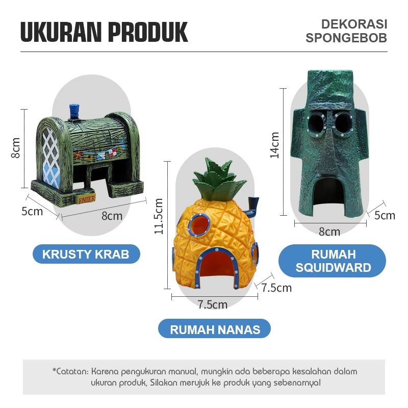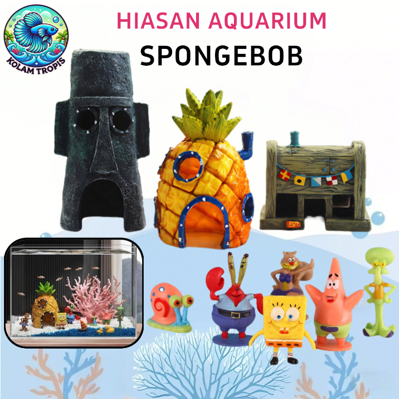 Hiasan Aquarium SpongeBob Karakter Lucu - Squidward Patrik Aksesoris Dekorasi Ikan, Aman untuk Ikan
