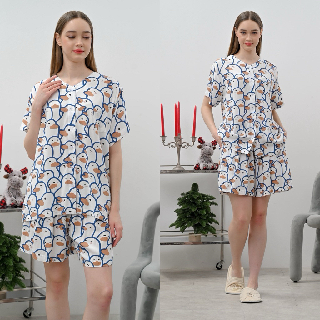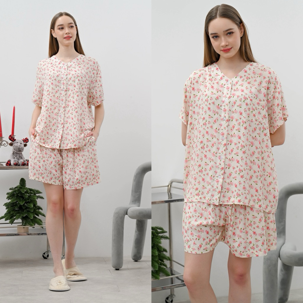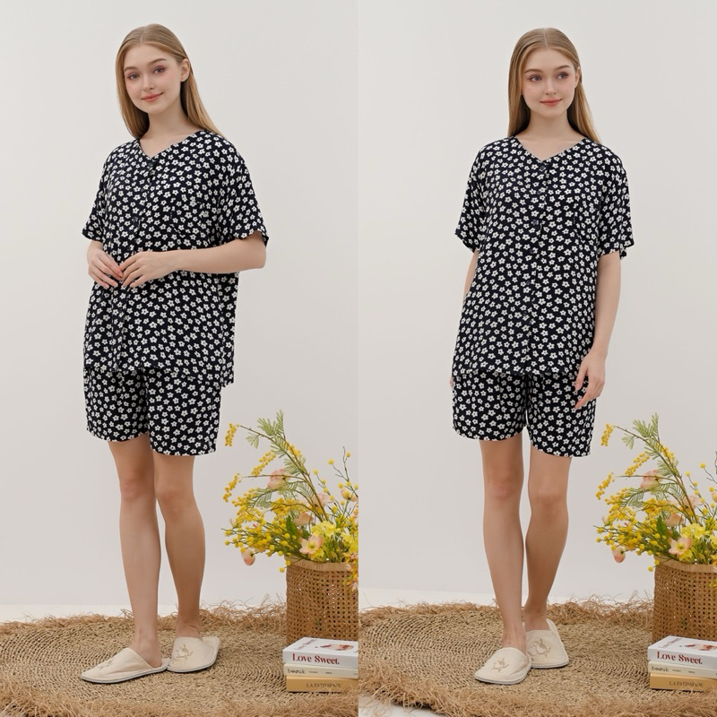 HAIMA - KELLY SET ( pajamas - one set - piyama pendek - piyama baju tidur rayon)