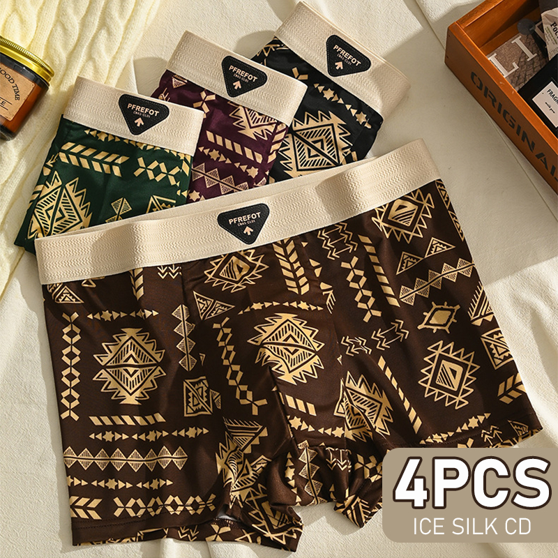 ISI 4PCS Celana Dalam Boxer Underwear Pria Ice Silk Sutra Daleman Nyaman