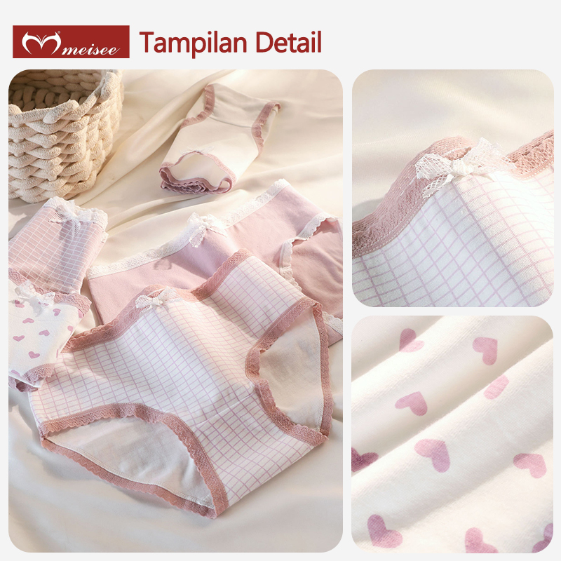 MEISEE 5 PCS Celana Dalam Wanita Katun Elastis Pinggang Tengah CD Wanita