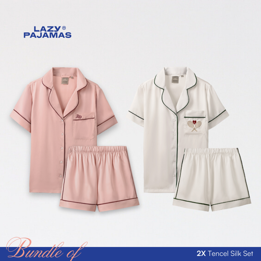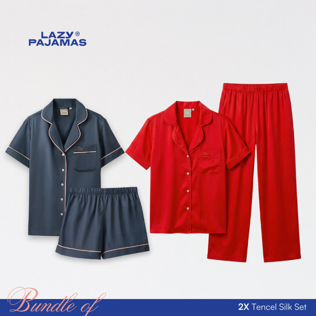 Lazy Pajamas® Bundle of 2 Tencel Silk Pajamas Set | Piyama | Baju Tidur