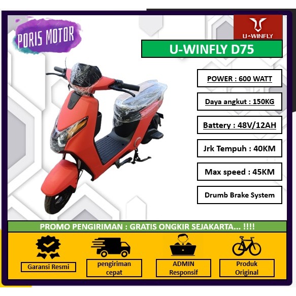SEPEDA LISTRIK DEWASA U-WINFLY D75 600W GARANSI RESMI