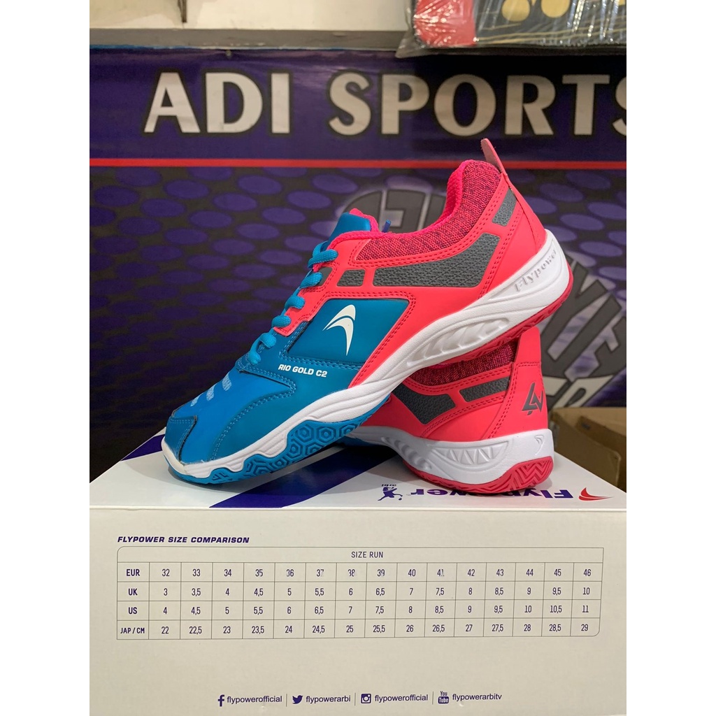 Sepatu Badminton / Bulutangkis Rio Gold C2 C 2 New Colour - Skyblue Pink / White Red Original