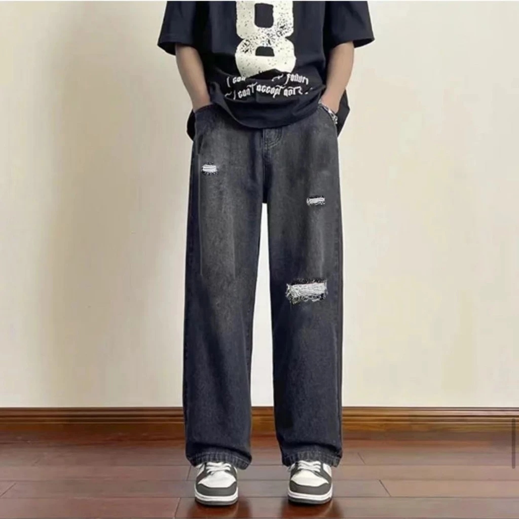 SMM - Celana Jeans Panjang Pria Korean Style Celana Losefit Ripped Baggy Jeans Pria