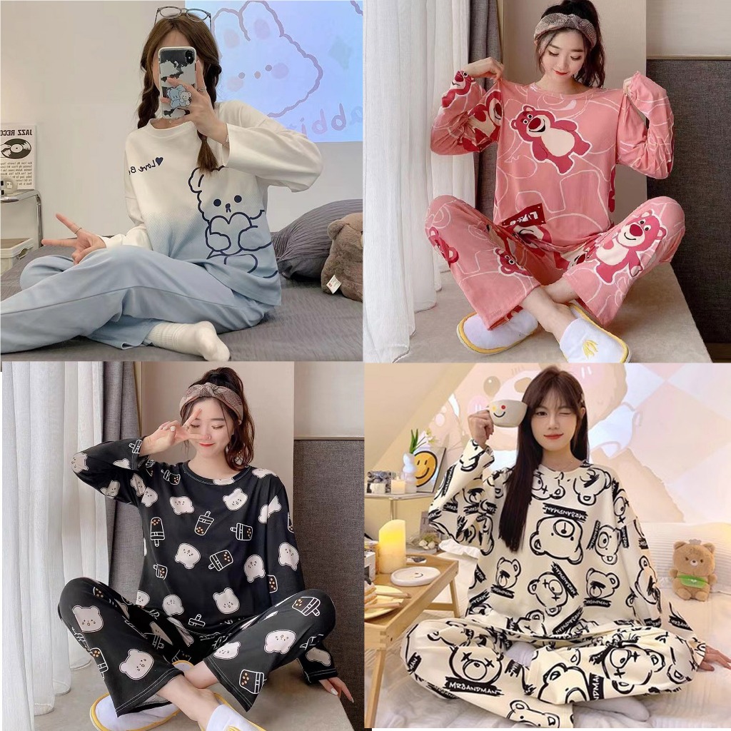 Baju Tidur Wanita Set Piyama Pajama Lengan Panjang Motif Lucu