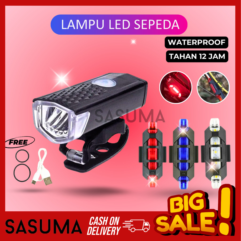 SASUMA Lampu Belakang Sepeda LED USB Rechargeable Anti Air Lampu Sepeda USB+Kabel cash
