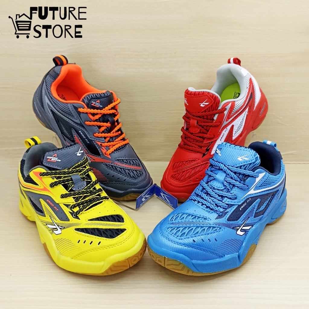 Spotec Sepatu Badminton Derby Warna Biru Abu Tua Merah Putih