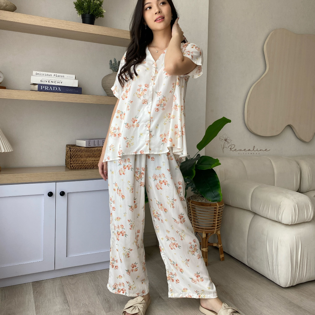 ALURA - Set Piyama Lengan Pendek Celana Panjang Premium Wanita|Baju Tidur Rayon Busui Bumil Friendly