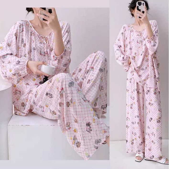 RULIF Baju Tidur piyama wanita katun rayon premium oversize pp/setelan rayon katun soft flowy 2708