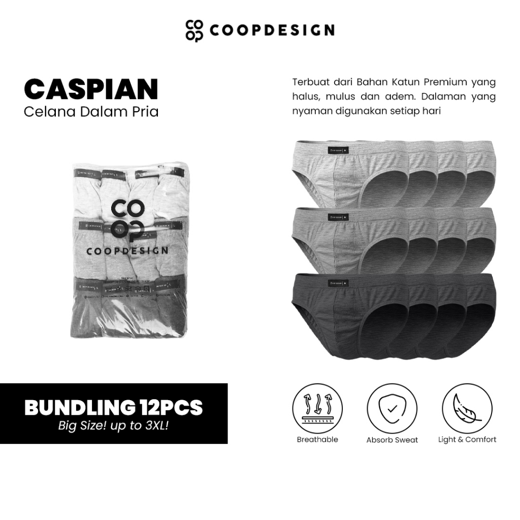 Coop Design - Caspian Celana Dalam Sempak Polos Stretch-Able Boxer Pria Isi 12, Selusin