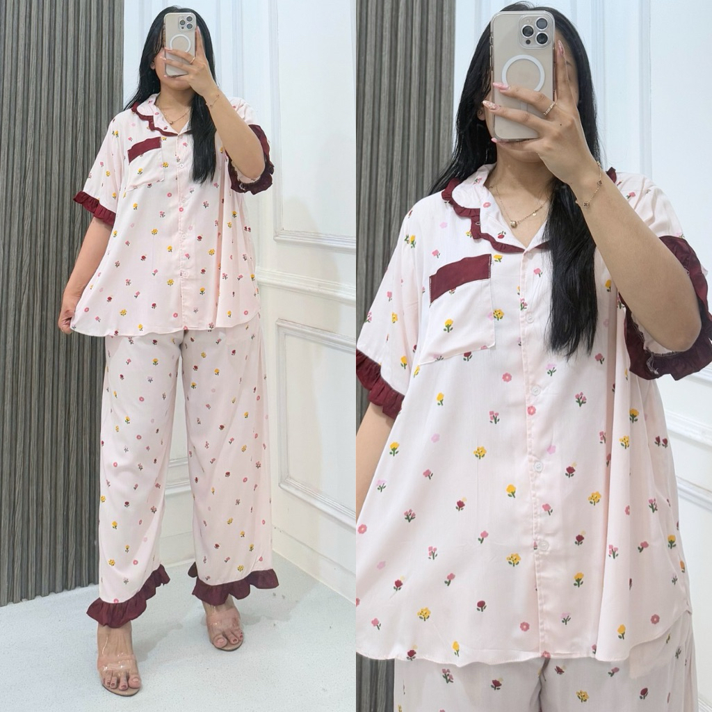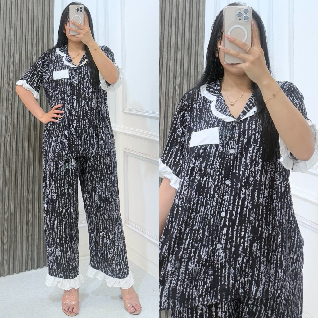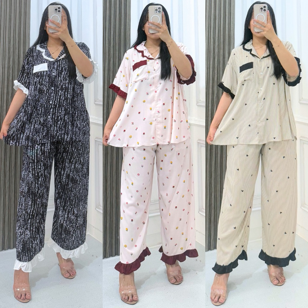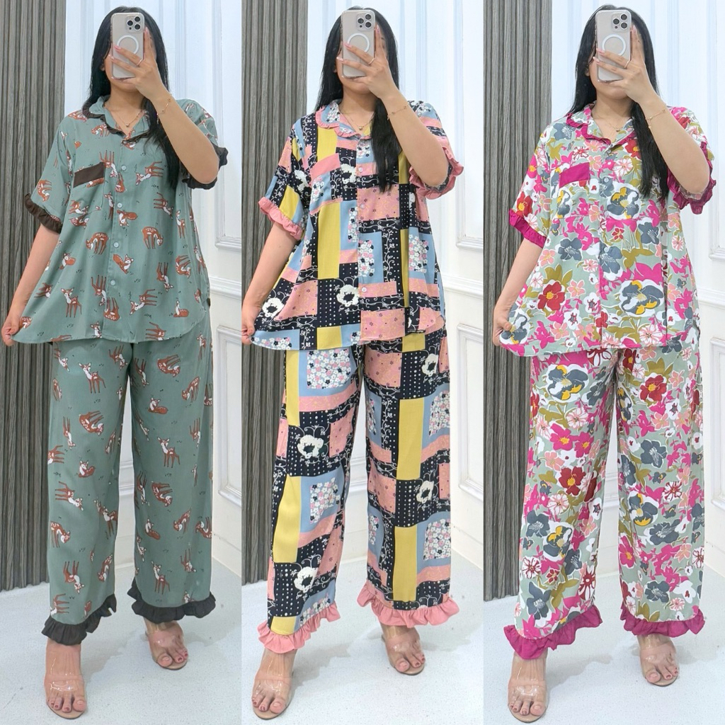 SET BELLE LD 120 | SETELAN PIYAMA MIX POLOS TWILL MOTIF RAYON | BAJU TIDUR PAJAMAS