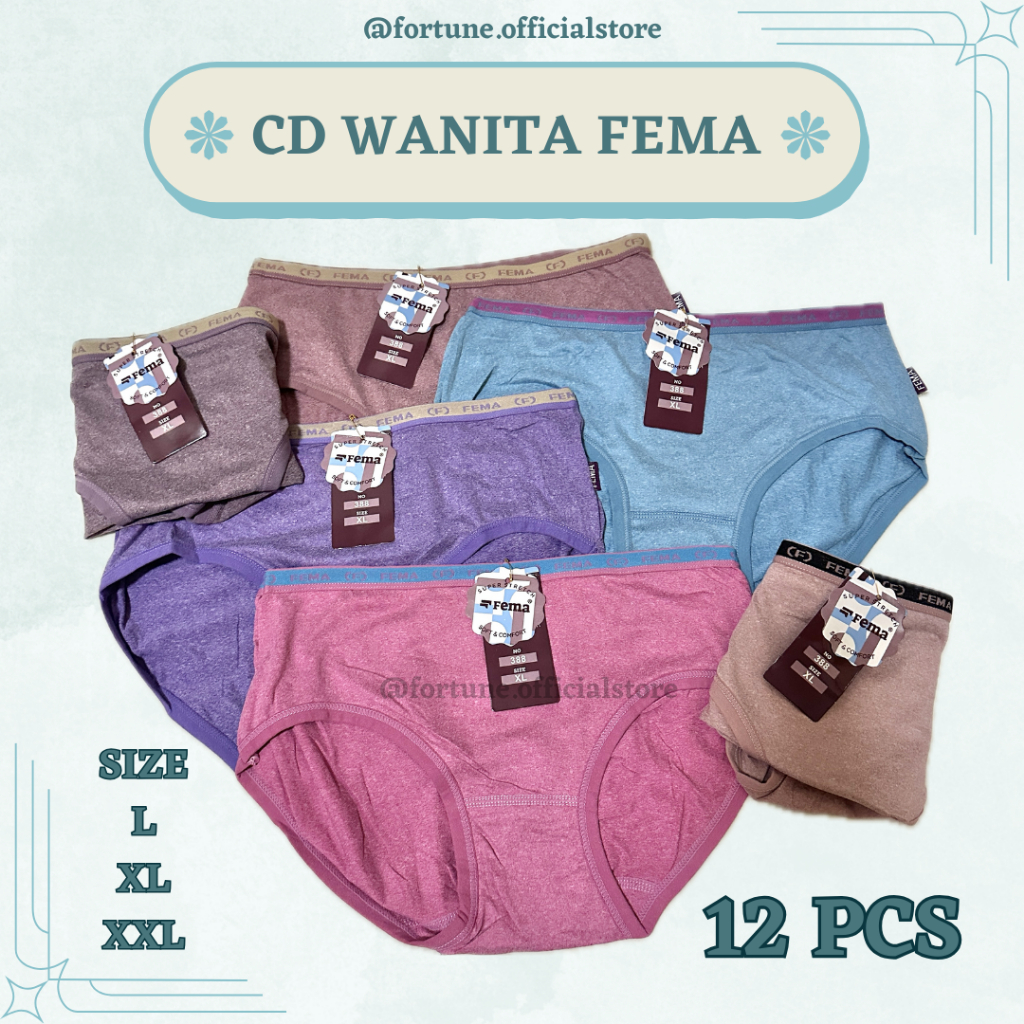 Celana Dalam Wanita Fema 12 Pcs / CD Katun Remaja Dewasa / Sempak / Celqna / Cawet / Pakaian Dalam Murah Sexy