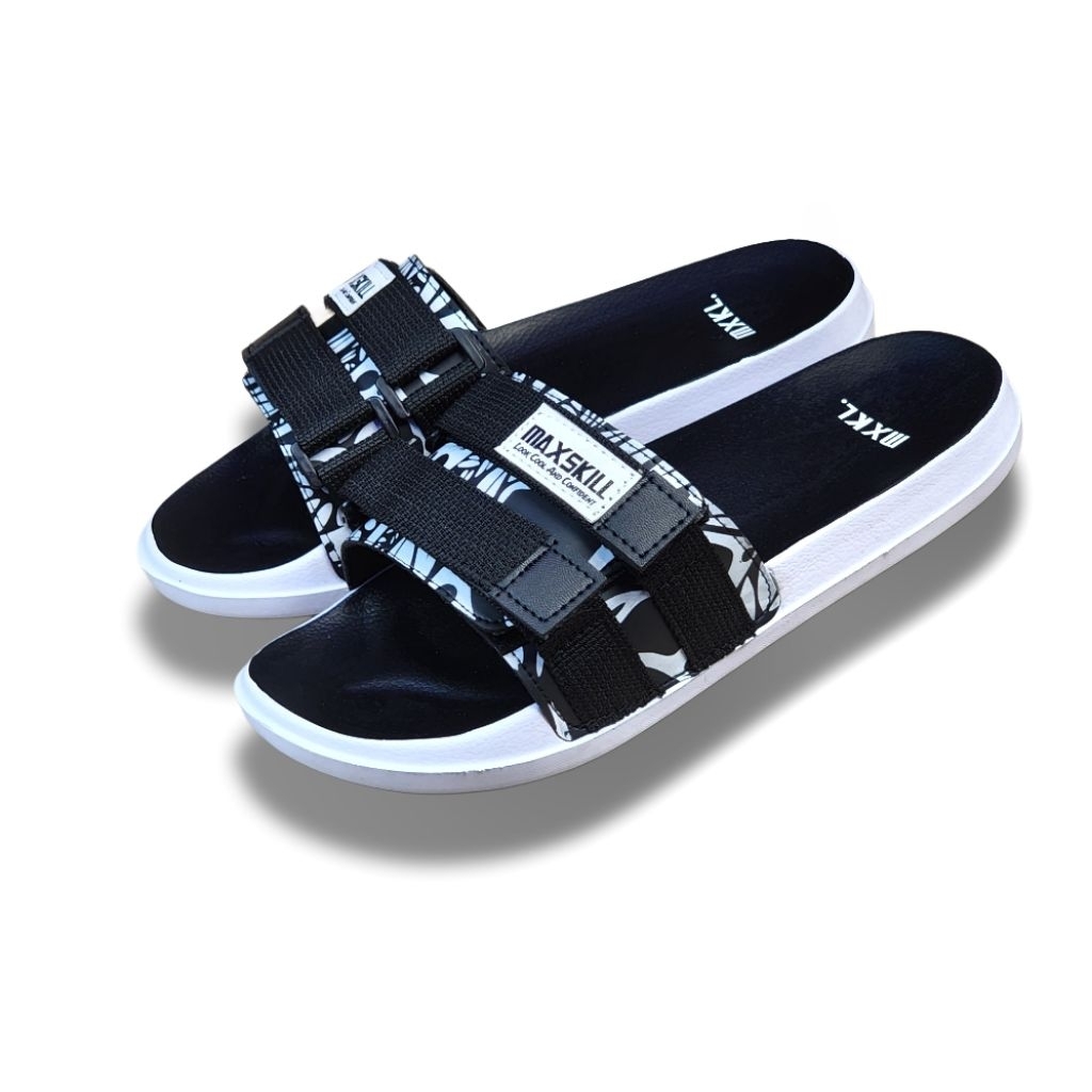 Maxskill Sandal Slop pria Wanita Sendal Slide Full Motif Hitam Putih