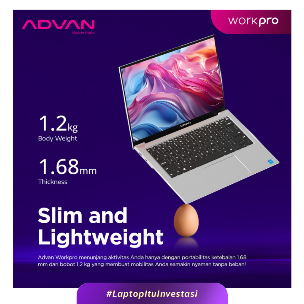 ADVAN Laptop Workpro Intel Core i5 12450H 14 Inch FHD IPS 8GB 512GB Windows 11 Original
