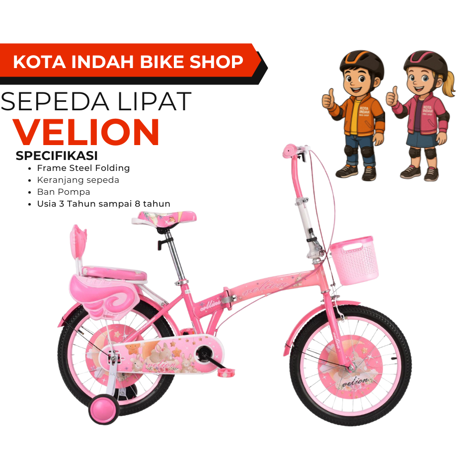 [SALE] SEPEDA LIPAT ANAK Laki dan Perempuan VELION size 16 18 I Fitur Frame bisa dilipat - kranjang - boncengan I untuk Anak usia 4-9 tahun