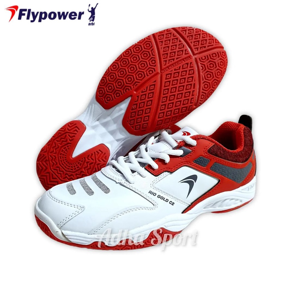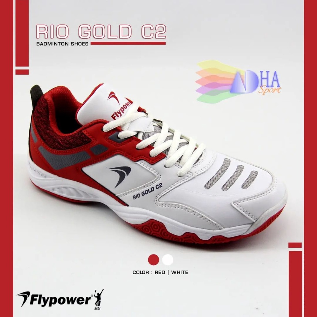 Flypower Rio Gold C2 White Red Sepatu Badminton Dewasa Unisex Original Adha Sport