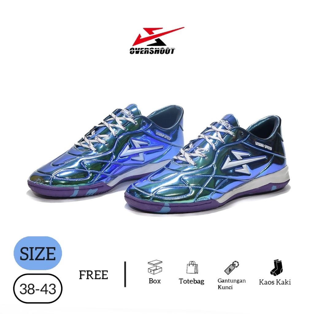 Sepatu futsal overshoot king metalic bunglon blue - sepatu futsal pria