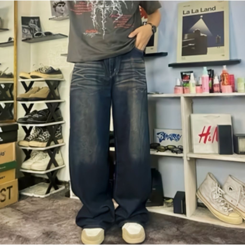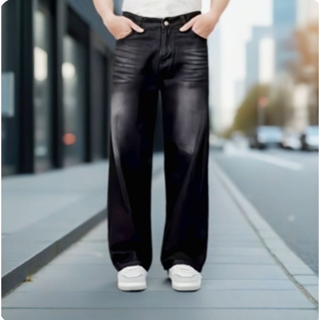 Celana Baggy Jeans Pria Gombrong Skena Wisker Unisex