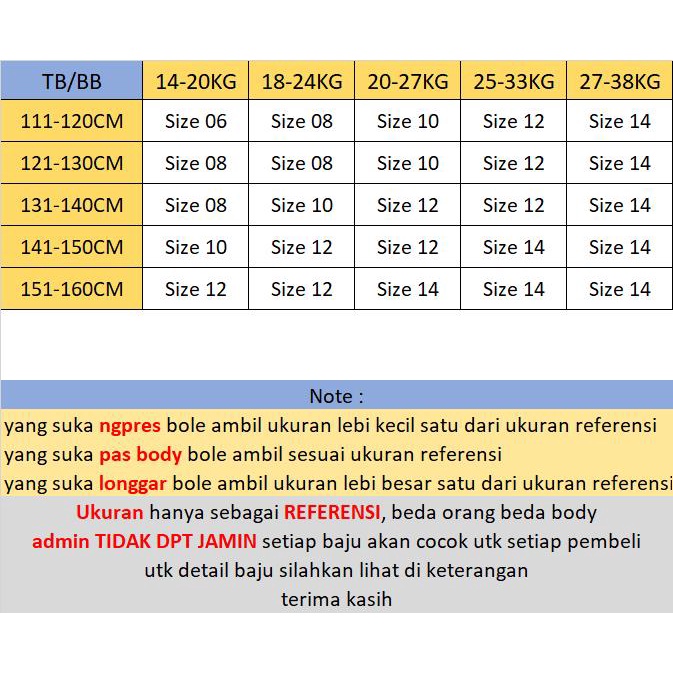 Size 06, Size 08, Size 10, Size 12, Size 14, Topi