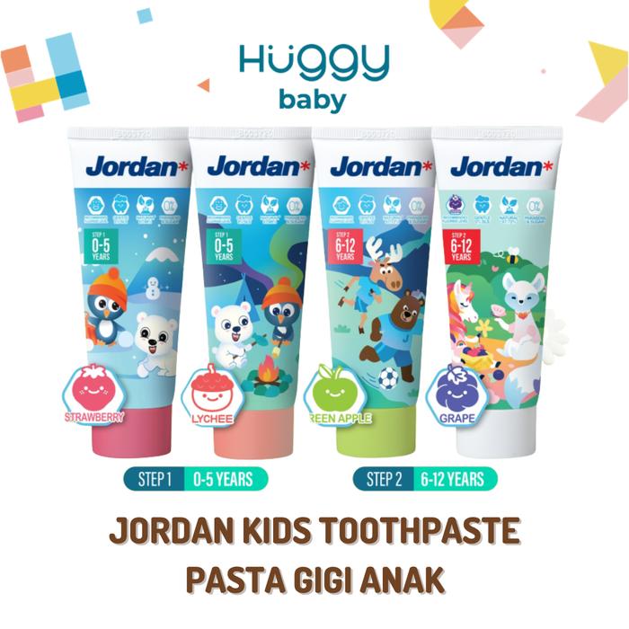 Jordan Kids Toothpaste Step 1 & Step 2 | Pasta Gigi Odol Anak Tube 75g - STEP 1 STRAWBERRY