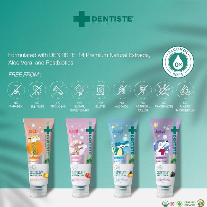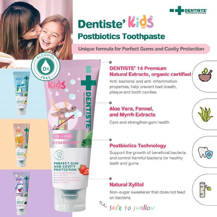 (1+ Years) DENTISTE Postbiotics Kids Toothpaste Strawberry 60gr / Pasta Gigi Anak Tanpa Fluoride