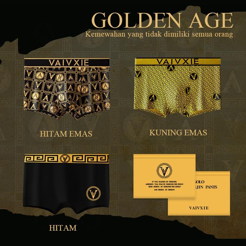 ISl 3PCS Celana Boxer Pria Kemasan Plastik Tertutup Dingin Antibakteri Elastis