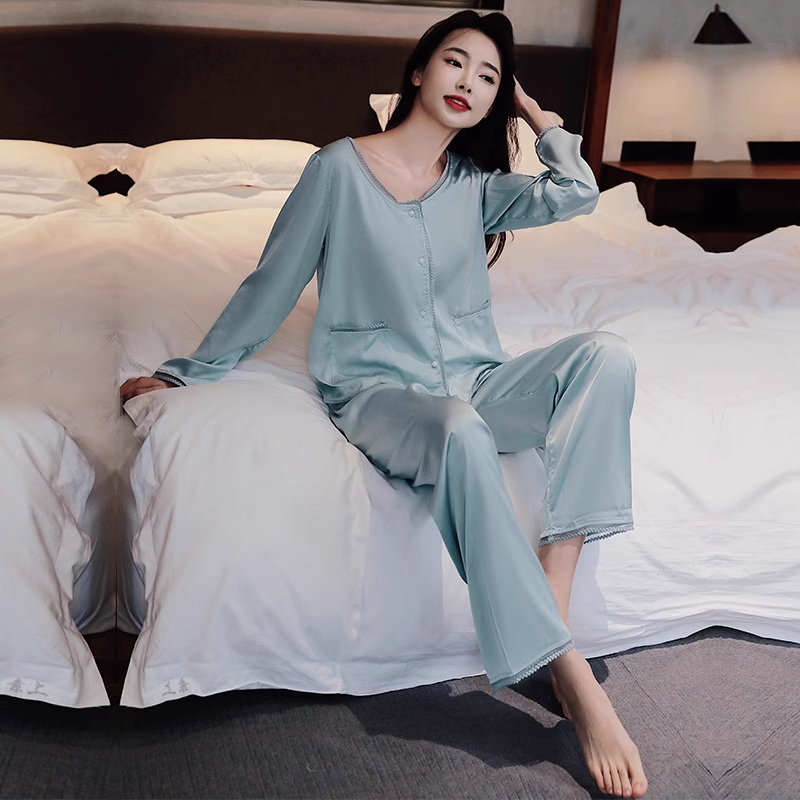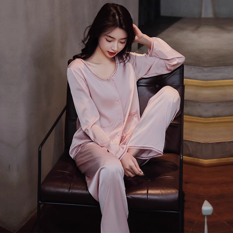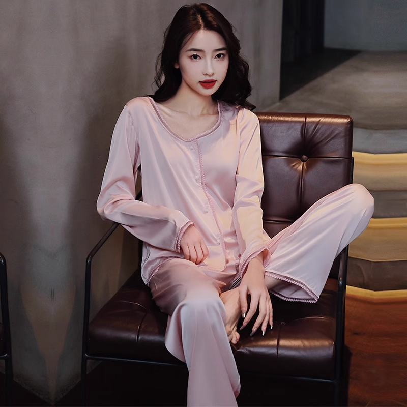Piyama Wanita Sutra Ice Silk Premium – Setelan Tidur Polos Gaya Princess, Adem & Elegan untuk Musim Panas & Gugur
