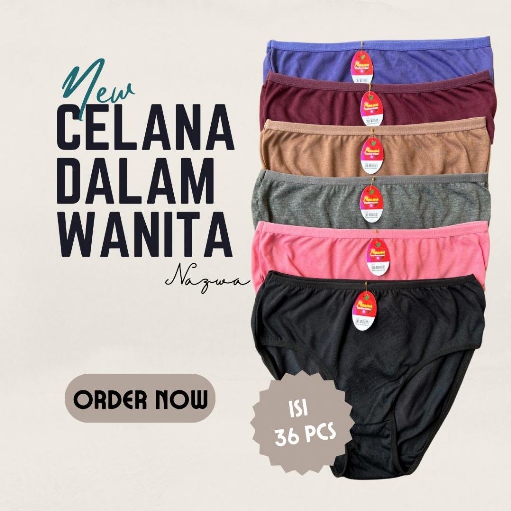 3 Lusin Murah Celana Dalam Wanita Dewasa CD Winalin/Nazwa 36 Pcs Katun Polos Lembut CD Cewek Warna Terang Gelap