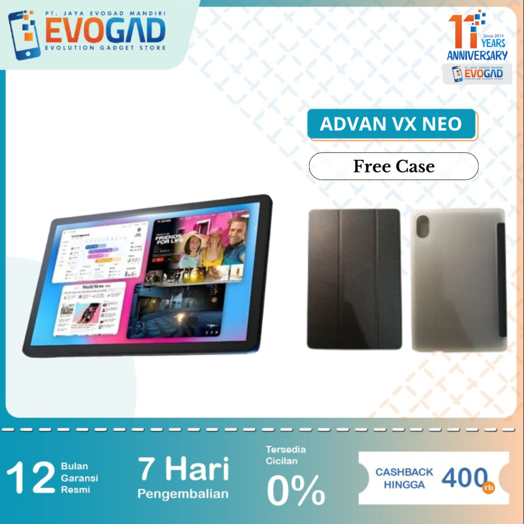 ADVAN TAB VX NEO 4GB/128GB 10.1”IPS SCREEN TABLET ANDROID 14, Up to 512 GB, 6200mAh | Unisoc Tiger T606 | Garansi Resmi Advan Indonesia 1 Tahun