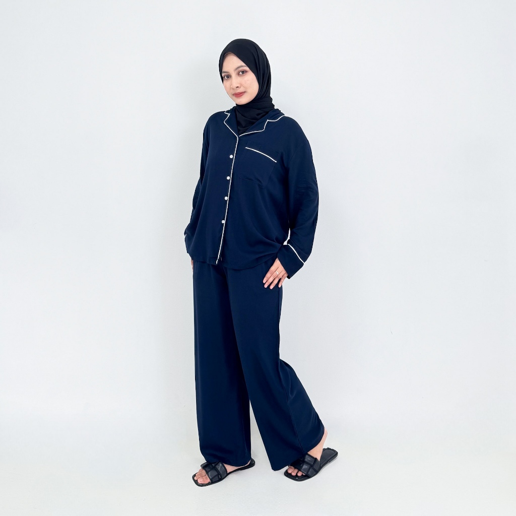 Lezahrasignature Setelan Piyama Lengan Panjang Katun Rayon Premium Lembut Halus Fit L-XXL Set Baju Tidur Uni