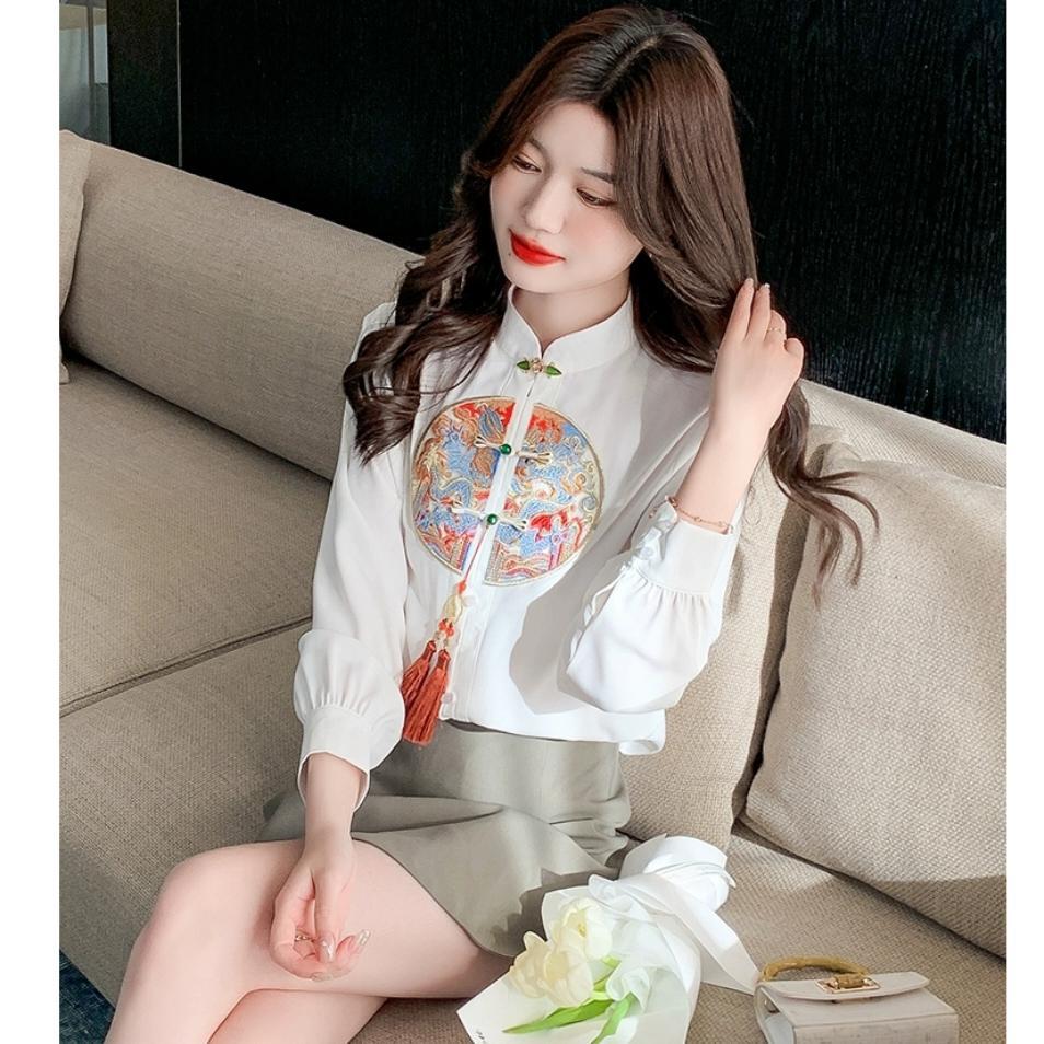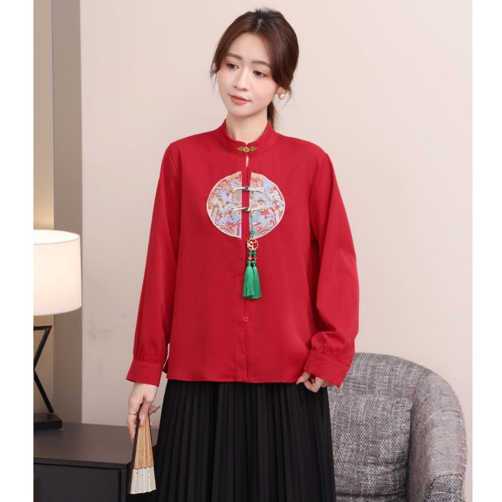 TM 0296 Kemeja CNY Jiawei embroidered cheongsam shirt import