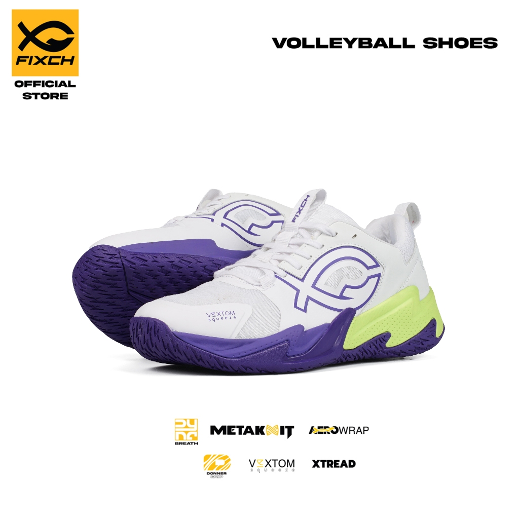 FIXCH - Flames Sepatu Voli Low Cut - White/Purple/Green Neon