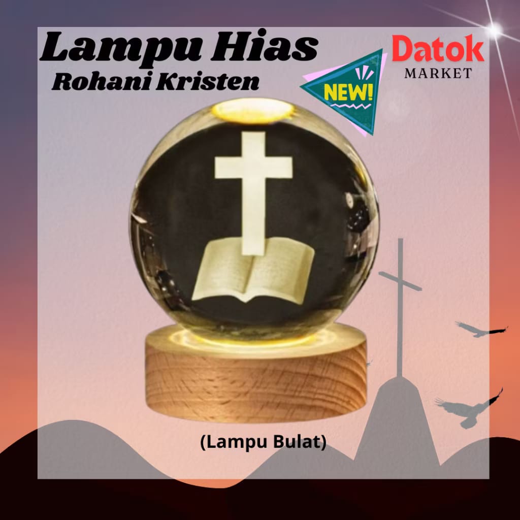Lampu LED Tidur Transparan 3D Karakter Agama Kristen Rohani Yesus Salib Hias Natal Meja Lampu Bulat LED Tidur Transparan