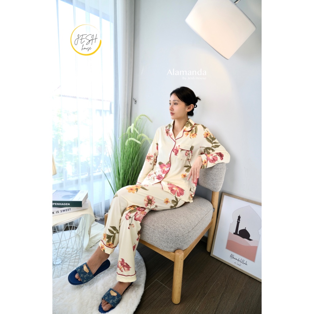 NEW JESHHOUSE PART II Piyama Set Cotton Milk Ready Stock Baju Tidur Piyama Set Kemeja Celana Panjang Baju Lengan Pende