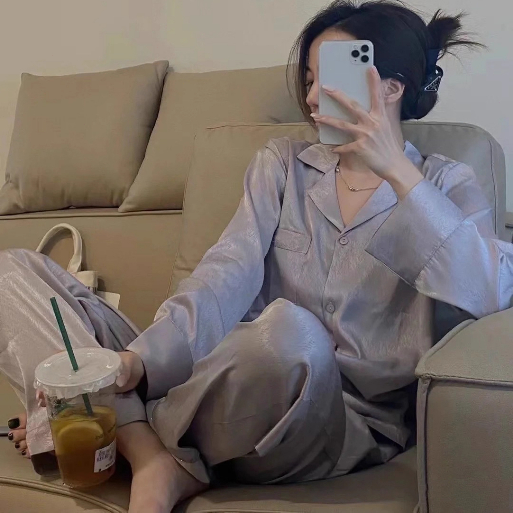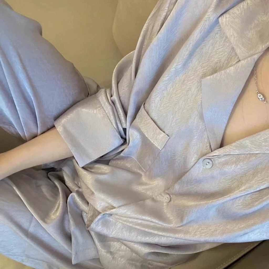 Baju Tidur Wanita Setelan 2-Piece, Kancing Panjang Lengan, Sifon Halus, Pakaian Rumah Elegan & Nyaman – Pajamas Set Wani