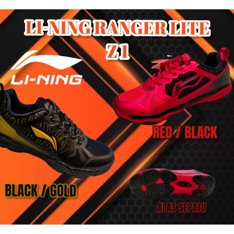 Sepatu Li-Ning Ranger Lite Z1 Ukuran 40-44 Warna Hitam Gold Red