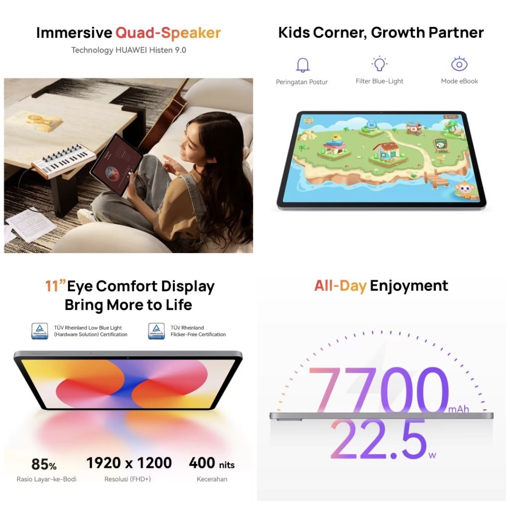 Huawei MATEPAD SE 11 4/128 GB GARANSI RESMI FRESH NO REPACK SEGEL ASLI ORIGINAL BELUM AKTIVASI BNIB (Tablet SE11 11" RAM 4GB + 128GB)